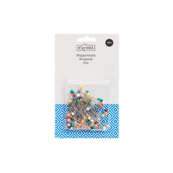 <p>Hiiliteräksestä valmistetut nuppineulat värikkäillä nupeilla.pakkaus sisältää 100kpl.</p>