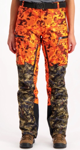 <p> Når man designer funksjonene og strukturen til Anar Hirvas elgjaktbukser, har utgangspunktet vært de stadig skiftende værforholdene i jaktsesongen om høsten, jegernes behov og ønsker, forskrifter om elgjaktklær og stil. Resultatet er fullstendig vind- og vanntette bukser som er ekstremt stille, behagelig lette, sikre og stilsikre – i ekte finsk design! Buksene, som er et resultat av samarbeid mellom en finsk toppdesigner og en dyktig mønsterdesigner, etterlater ingenting å ønske. Anar Hirvas jaktbukser er designet for finsk elg- og hjortejakt. Overflatematerialet er ekstremt stille og slitesterk, børstet polyester. Fargen og mønstrene er laget for å kamuflere jegeren fra dyrenes synsevne. Den klare oransje fargen oppfyller de nyeste lovkravene. Disse egenskapene passer perfekt for både posteringsjakt og snikjakt. Den fullstendig vanntette og utmerket pustende samt lette strukturen holder jegeren så komfortabel som mulig. Det høykvalitets nettforet fjerner fuktighet fra huden og de indre kleslagene. Glidelåsens vind- og vanntetthet er sikret med en bred vindklaff. Glidelåsene fra den verdensberømte produsenten YKK garanterer lang levetid og funksjonalitet. Den elastiske justeringen i midjen gir en fantastisk passform. Klærne følger jegerens bevegelser som et annet skinn. De glidelåsede ventilasjonsåpningene på sidene er spesielt nyttige ved aktiv jakt i varmt vær. </p> <p> Designet og testet i Finland. Ekstremt stille børstet overflatestruktur. Digitalt kamuflasjemønster designet i Finland for god kamuflasje. Vanntett og pustende materiale som sikrer komfort. ADS-membran, pusteevne 5000g/m2/24h og vanntetthet 10 000mm. Teipede sømmer. Forsterkede områder utsatt for slitasje, som baken og nederkanten av bena. Øvre del av buksene har et slitesterkt nettingfor som garanterer komfort og topp pusteegenskaper. Tafettaforing nederst på bena gjør buksene enkle å ta på. Elastisk midje og beltehemper. Knytteknapper for seler.</p>