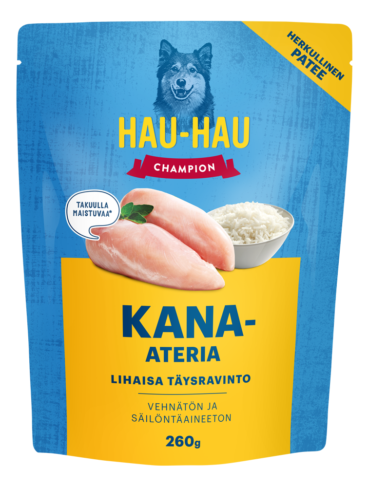 Deilig og klar til servering, Hau-Hau Champion Kyllingmåltid er en våtfôr designet for hunder av alle størrelser.