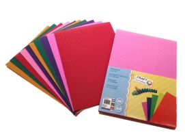 Craft bølget kartong i A4-størrelse, assorterte farger. Inneholder rosa, rød, grønn, lilla og gull. To ark av hver farge, totalt 10 ark.
