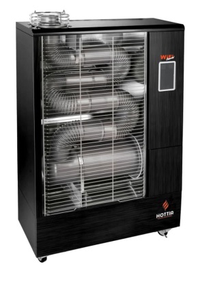 <p>Hottia Wi-Fi-varmer kan kontrolleres med en smartenhet via et WiFi-nettverk. Last ned appen til smartenheten din, og du kan overvåke drivstoffnivået og romtemperaturen eksternt, samt slå av og på varmeren din.<br/><br/>Hottia diesel-infrarød varmer produserer infrarøde stråler som varmer opp faste materialer i varmesonen. Disse materialene fungerer som varmejevnere og varmebeholdere. Varme fra disse materialene sprer seg jevnt og behagelig i rommet. Hottia-varmerne blir aldri for varme. En flertrinns og svært effektiv forbrenningsprosess, sammen med presis drivstofftilførsel, sikrer at det ikke slipper ut ubehagelige lukter eller karbonmonoksid i luften. Hottia-varmerne trenger ikke avtrekkskanal for røykgass, så lenge ventilasjonen i det oppvarmede rommet er tilstrekkelig og riktig utført. For å sikre personsikkerheten anbefales avtrekkskanal for røykgass ved bruk i boliger.<br/><br/>Hottia-varmerne er testet i tyske TÜV-laboratorier og har fått EU-sertifikat i henhold til gjeldende standard.<br/><br/>Hottia diesel-infrarødvarmer passer spesielt godt i situasjoner hvor rask og effektiv oppvarming kreves. Fordelene og egenskapene til varmeren er spesielt verdsatt i profesjonell bruk, og de er populære på byggeplasser, i industrilokaler, terrasser og telt. Enhetene er også godt egnet for fritidsboliger som ikke varmes opp når de ikke er i bruk, eller kun har grunnvarme.<br/><br/><strong>Sikkerhet:</strong></p>FlammevaktOveropphetingsbeskyttelseOverspenningsvernVeltedetektorRomtemperatursensorMotorrotasjonssensor<br/><strong>Merk!</strong> Bruk kun tradisjonelt drivstoff av vinterkvalitet og sørg for at det ikke finnes spor av rusk i drivstoffet. Bruk aldri biodiesel, da dette tetter filtrene. Dette sikrer at varmeren fungerer som den skal. Reparasjoner forårsaket av sommerkvaliteter, biodiesel eller forurenset drivstoff dekkes ikke av garantien.<br/><br/><strong>Tekniske spesifikasjoner:</strong>Fjernstyrt med smartenhet og WiFi-tilkoblingVarmeeffekt: 10,5 kVWMaks oppvarmingsområde: 66 m²Drivstoff: Diesel eller fyringsolje samt parafinTankkapasitet: 25 literForbruk: 0,9 l/tStrømforbruk: tenning 60 W, kontinuerlig 40 WSpenning: 230V / 50 HzMål (L x B x H): 71 x 32 x 112 cmDriftstid: 26-28 timerGaranti: 1 år
