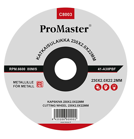 -kappeskive for vinkelsliper -anbefalt for metall -hull diameter 22,2 mm -maks rotasjonshastighet: --C8000-C8001-C8101: 12 200 RPM --C8003-C8103: 6 600 RPM -enkelpakket
