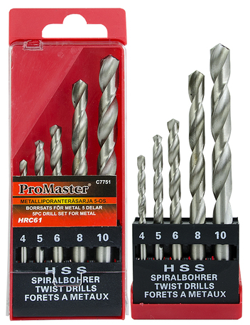 Metallborsett 5-delt -HSS 4241 stål -hardhetsgrad HRC61 -sett inneholder 5 biter bore, størrelser 4, 5, 6, 8 og 10 mm