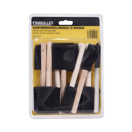 Skumplastpenselsett 12stk Settet egner seg for alle malinger, trevokser og lim, og er spesielt designet for overflatebehandling. Settet inneholder størrelser:4stk x 25 mm, 4stk x 50 mm, 2stk x 75 mm og 2stk x 100 mm. Materiale: Plast og skum.